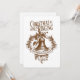 Dela den riktiga magin med den här årstiden med detta vintage-inspirerade julkort. Med en invecklad, rustik illustration av en hängande bronssignal runt omgiven av järnek, bär och ett dekorativt banderoll. Det festliga budskapet lyder "CHRISTMAS SPIRIT RINGING" och "CHRISTMAS MAGIC FILLS HEARTS". Denna eleganta, gammaldags design är perfekt för att skicka varma hälsningar, glädje och fred till vänner och familj under julen. Ett vackert val för alla som älskar traditionell, klassisk eller antikt inspirerad julstämning.