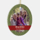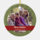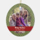 Mönster i kryssen mot kor har vintage jul-färg mot gröntens bakgrund. Det finns ett rödband i vintage färg över grund. Den nuvarande utformningen innehåller texten "God jul" mitten i bandet, inklusive din familj namn och året. Texten färg är grädde. Det här är en mall som du kan anpassa på eget sätt. Den här personligen gör en underbar present till en älskad person eller som en årlig keepé för dig själv. Detta prydnadsämne är designat som en del av insamlingen av Helgdag under julen.