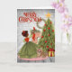 Vintage julkort för afroamerikaner med kvinna som dekorerar julgran