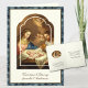Med en vacker specialdesignad julkrubba med Jesus, Maria och Josef och beundrande himmelska änglar. På insidan finns en julbibelvers och samma bild som på framsidan i en oval ram. All text och typsnitt kan ändras.