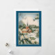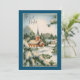 Blått Retro Vintage Snö Scene-julkyrkan, tyst nattkort Helgdag.