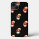 Vintageillustration God jul högtidlig design med ett sött retro-mönster som upprepas. En glad, glädjerik tomte som kliver ner genom skorstenen med en säck full av leksaker på svart bakgrund.