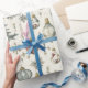 En elegant, gammaldags julprydnad mönster, med gräs träd och grönt och guld snöflingor.