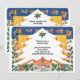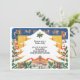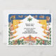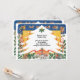 Vintage julillustration Julbild med jultomten som flyger sin släde med renar. En söt julgran med ljus och järnek.