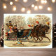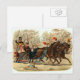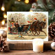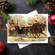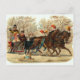 Vacker gammal jul-slädtur postkort. Denna design har två vackra hästar och en familj i deras släde på väg genom snön med sin hund.