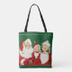 Här är tomten med mrs Claus och baby Santa! Bild från ett Vintage-julhälsningskort med en anpassningsbar grönt gräns.