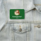 Ett namn bricka med en reflexbild med ett leende lycklig Jultomten omgivet av en andedräkt från gräs med en spricka i hatten.