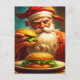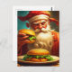 Vintage-stil-reklam där Jultomten äter en hamburgare eller två julkort.