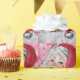 Vintage och vackra jultomten som är papper med röd och rosa bakgrund.