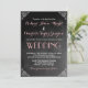 Vintage bröllopsinbjudan design. Viktoriansk kant med kalkboardbakgrund. Söt rosa och vit typsnitt. En klassisk stil för din speciella dag. Du kan också anpassa typsnittet och formuleringen för andra tillfällen som brud shower, baby shower, födelsedagsfest, förlovningsfest och mer.