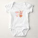 Söt handritad kanin i vintage klänning som säger Hej. Anpassad kroppsdräkt för ny bebis. Bedårande design med skript hej. Babykläder present för ny bebis. Present till bebis och småbarn till nya föräldrar.