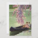 Vintagens illustration av bilden av kärlek och romantik med en ung nyfödd man och kvinna som delar ett tyst ögonblick och roterar en kanot i sjö. En stor blommigt träd med rosa blommor hänger över paret.