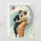 Vintage-illustration kärlek och romantik bild med ett par i kärlek som kysser medan de sitter på en halvmåne.