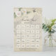 Ha roligt med möhippan bingo. Texten fält är redigerbar, så ändra dem till kostym i party och gäster. En vintage karta är bakgrunden och är idealisk för den brud som kärlek ska resa med. Romantiska vita blommor i det övre hörnet. En romantisk design för en äventyrlig kvinna.