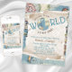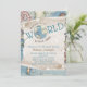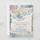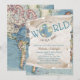 Vintage kartbabyfestinladningar med blå och gul jordglob på en gammal pergament- och kartbakgrund med Välkommen till världen-text. Dessa söta vintage kartbabyfestinladningar kan enkelt anpassas för ditt evenemang genom att helt enkelt lägga till dina detaljer.