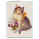 En vintageillustration av en härlig fluffig katt som ha på sig ett guld- band och pilbåge. Katten sitter med en basket av lilor, blommar ser rosan och vit på dess fot och direkt på dig som, om ordstävet, "dessa är för dig!", Detta kort är tom insida för ditt egna meddelande.