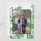 "Vintage Kelly Grön Vit Chinoiserie Blomma Spara Datum Annonsering." Vintage kinesisk Chinoiserie blomsterkonst i Kelly grön och vit handmålades av internationellt licensierad konstnär och designer, Audrey Jeanne Roberts. Ett par kärleksfåglar i ett stiliserat träd med blommor och antydan till en pagod (på baksidan). Upphovsrätt alla rättigheter reserverade.