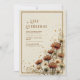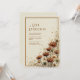 Bjud in dina gäster till en fest med varm romantik med denna utsökta kopparfärgade botaniska design. Kompositionen visar en frodig spruta av Astrantia-blommor – även kända som Masterwort – i rika nyanser av bränt orange, terrakotta och elfenben. Dessa ömtåliga, stjärnformade blommor framträder från hörnet av en lyxig, läderartad krämtexturerad bakgrund, accentuerad av en nyckfull beströdd med glänsande guldpudret. En raffinerad, vintage-inspirerad dubbel guldbård inramar scenen och skapar en jordad och sofistikerad look som balanserar jordnära organisk skönhet med exklusiv förgylld elegans. Denna design är det främsta valet för en rustik-chic höstbröllop, en vintage herrgårdsceremoni eller en sofistikerad skördefest. Den är särskilt väl lämpad för par som planerar en solnedgångsmottagning eller en romantisk skogshändelse med en varm, jordnära färg