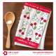 Tillägg ett charmigt touch i ditt kök med denna anpassningsbara kökshandduk som har ett vintage körsbärsmönster på en krispig vit bakgrund, med accentuerande röda kanter, inslag av grönt och svart, och anpassningsbar text som lyder “Mormors kök”. Denna stilrena och praktiska kökshandduk är en idealisk present till alla som älskar att laga mat eller baka. Ändra namnet för att skapa en unik och genomtänkt present till kockar. Perfekt för födelsedagar, mormors- och morfar-dagen, inflyttningsfest eller någon annan speciell tillställning.