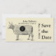 Anpassadets humoristiska Pension Spara datumet Fotokort med en vintage som illustrerar komjölk och monogram.