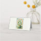 Ett platskort med en säsongsbetonad St. Patrick's Day-bild. Blek, grungig pappersstil. En grön kruka med guld och mynt som rinner ut på marken. En färgglad regnbåge ovanför och klöver som växer runt omkring.