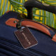 Den här resväskemarkören i brunt läder är den ultimata lösningen för att öka säkerheten på din bagage samtidigt som den är enkel att upptäcka på bagagebandet! Våra bagagebrickor är inte bara stilrena och iögonfallande, de ger också viktig information ifall din väska försvinner under din resa. Med ditt namn, adress och kontaktinformation tydligt synlig kan du sova lugnt med vetskapen att dina ägodelar är säkra och lätta att identifiera. Skaffa ett set bagagebrickor idag och njut av den trygghet som kommer med att ha ett personligt och lättidentifierbart tillbehör till dina väskor.