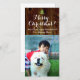 Rustik mörk, brun träplank med skriften "god jul" och en söt äpple grönt träd med vita prickar. Ett halvgrungande utomhustema för ett land- eller kabintema. Rustiska bruna träskivor från ett antika staket eller golvtavlor kontrast mot ett vitt finare-skript.