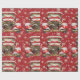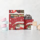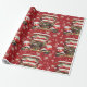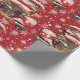 En charmerande röd vintage lastbil, dekorerad med ett stort båge och snö, sitter mot en ren bakgrund av fallande snöflingor och festitiva motiv, som förkroppsligar andan i helgdag firande.