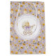 A soft lavender floral pattern paired with a vintage baby carriage creates a beautiful keepsake-style gift bag for baby showers. Customize the text to match your celebration.
