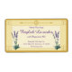 hörnaccenter i vintage stil och pub i det övre centrala hörnet i ett djupt orangefärgat nyans som är inställt på ljusare nyanser av gult. Två Lavender-anläggningar i blomning till lämnat och höger. Centreringsområdet har sex matchande färgader anpassade text linjer. Perfekt för tvål, ljus, poppuri, badsalter.