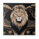 Vintage Lejonporträtt, denna design har en vintage illustration av ett porträtt av ett lejon med lugnt och överlägset uttryck. Bakgrunden är ett svartvitt safari-landskap med träd och berg. Den övergripande bilden har en art déco-stil.