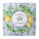 "Vintage Lemon Blommigt WandeBlue White w Monogram keramik tile" har ditt familjemonogram med typografi stil dividerat uppifrån och grund. Handmålade teckningar av blåa och vita plattor av vintage Mediterranean stil som har parats med en fras av citron och bladkrans med vita citrusblommor. Skapat i vattenfärger och akryl av internationellt licensierad konstnär och formgivare, Audrey Jeanne Roberts, upphovsrätt.