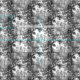 Klassisk vintage i landskapsskikt de jouy mönster med rostskydd och bro i en avskiljningsram med träd i skuggor av svart och grått på vit bakgrund. Mönster är sömlöst och kan byggas upp eller ned.