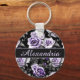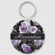 Förhöj din vardagliga stil med denna slående blomsternyckelring med eleganta lavendelrosor mot en dramatisk svart bakgrund. De mjuka lila blommorna kontrasteras vackert med subtila grå botaniska detaljer, vilket skapar en sofistikerad och modern vintage look. Ett personligt namn eller initialer i mitten ger en raffinerad, anpassad touch, vilket gör denna nyckelring både stilfull och unik för dig. Perfekt för dem som älskar djärva blommor med en chic, tidlös känsla, erbjuder den både iögonfallande design och praktisk funktion.