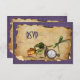 Detta förflutna tidevarv inspirerade vintage-svarskort har en UTRYCKT torkad gul ros, en liten grön satin-slinga och en gammal fickur som sitter på ett lager av gamla kärleksbrev med bleknade kalligrafiska skrivtecken och trasiga och brända kanter som matchar den visade bröllopsinbjudan nedan. Den visas här på vanligt papper, men skulle också se bra ut på linne-, filt- eller metallpapper i champagne eller is. En del av papperstyperna kommer att förändra färgen på designen, så var försiktig om du väljer filt-papper eftersom det kan göra att det gulnar mer än du önskar. Jag skulle INTE använda de guldfärgade eller silverfärgade metallpapperna. OCKSÅ, om du ändrar storlek på inbjudan, eller om du byter typsnitt, eller storlek på typsnittet, kan en del av designen och/eller texten kapas. Allt kommer att skrivas ut som du ser det på din monitor. Jag kommer inte att se din inbjudan, och Zazzle kommer INTE att rätt