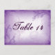 Vintage lilac lila rulla löv bröllop bordsnummer vykort med elegant löv scrollsar i lilac lila, på grym bakgrund.