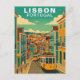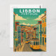 Capture the vibrant and soulful energy of the Portuguese capital with this elegant Lisbon, Portugal Travel Card. This vintage-style illustration features a quintessential yellow electric tram climbing a steep cobblestone hill lined with colorful, tiled buildings in shades of blue, yellow, and terracotta.