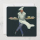 Vintageillustration av mat och bageriindustri med en professionell fransk bagare som bär en snygg hatt och förkläde. En konditor som bär hemlagade bakverk, tårtor, kakor, muffins, godis och andra efterrätter på brickor färska från ugnen i bageriet. Han är så glad att han ser ut som om han dansar!