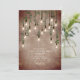Vintage Edison-ljus dekorerade med botanisk grönska som hänger från toppen över väderbiten rustik tegelbakgrund. Allt-i-ett-fest inbjudan lämplig för födelsedag, bröllop, öppen hus, inflyttning, professionell, stor invigning, årsdag, middagsbjudning etc.