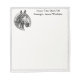 Vacker antika vintage teckning av en häst inramad av en hästsko. Perfekt minnesblock för ranchen, gården, hästtillbehör, sadel och foderbutik, hästälskare och hästflüsterare. Ändra bakgrundsfärgen till din egen favoritfärg.