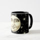 Den klassiske mannen i måne satte sig mot en svart, stjärnrik himlar. Utskrivet i svart och gyllene sepia.