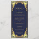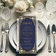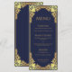 Vintage Marinblå Falskt Guld Elegant Bröllop Meny