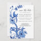 Vintage Marinblå Vita Chinoiserie Blommor Spara Datumet