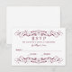 Dekorativa snurrar och flourerar ram den här elegantens vintage inspirerade till bröllop svarskort. Burgundy/maronröd och silver färg. Anpassa anpassningsbarnas OSA med ditt svars förfallodatum.