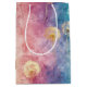 Vintage maskros abstrakt mönster presentpåse med ömtåliga fröhöjder överlagrade på rika teal, rosa och dämpade lila akvarellstrukturer. Drömlik och konstnärlig med en eterisk blandad mediaestetik, denna sömlösa design är idealisk för älskare av botanisk konst, boho-stilfans, naturentusiaster och beundrare av vintageinspirerad dekoration.