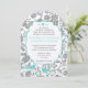 Vintage Mint Grått Blommönster Lovebird Bröllop Inbjudningar