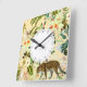 Vintage Modern Flower Jungle Tropical Fyrkantig Klocka