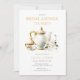 Inbjudan till tefest för möhippa med vattenfärg i vintage som kan anpassas för att inkludera din möhippa. Baksidan av inbjudan är ren och enkel vit. Inbjudan har en tekanna med vattenfärg, kopp och saucer och en bukett med daisy. Utformningen är söt och elegant och kan användas för vilken möhippa som helst party under året.