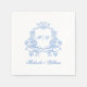 Förbättra din bröllopsmottagning med den här eleganten, pappra servetter som inspirerats av ReEmergency. Med en vackert utförlig vapensköld av blommigt i mjukt blått, anpassade med ditt monogram, namn och bröllop-datum, ger dessa blöjor en aning regencycore-sofistikering till firande.