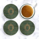 Vintage Monogram Vapensköld Music Manuscript Grönt Underlägg